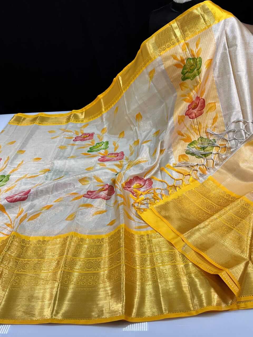 BANARASI TISSUE SILK HAND PAINT SAREE