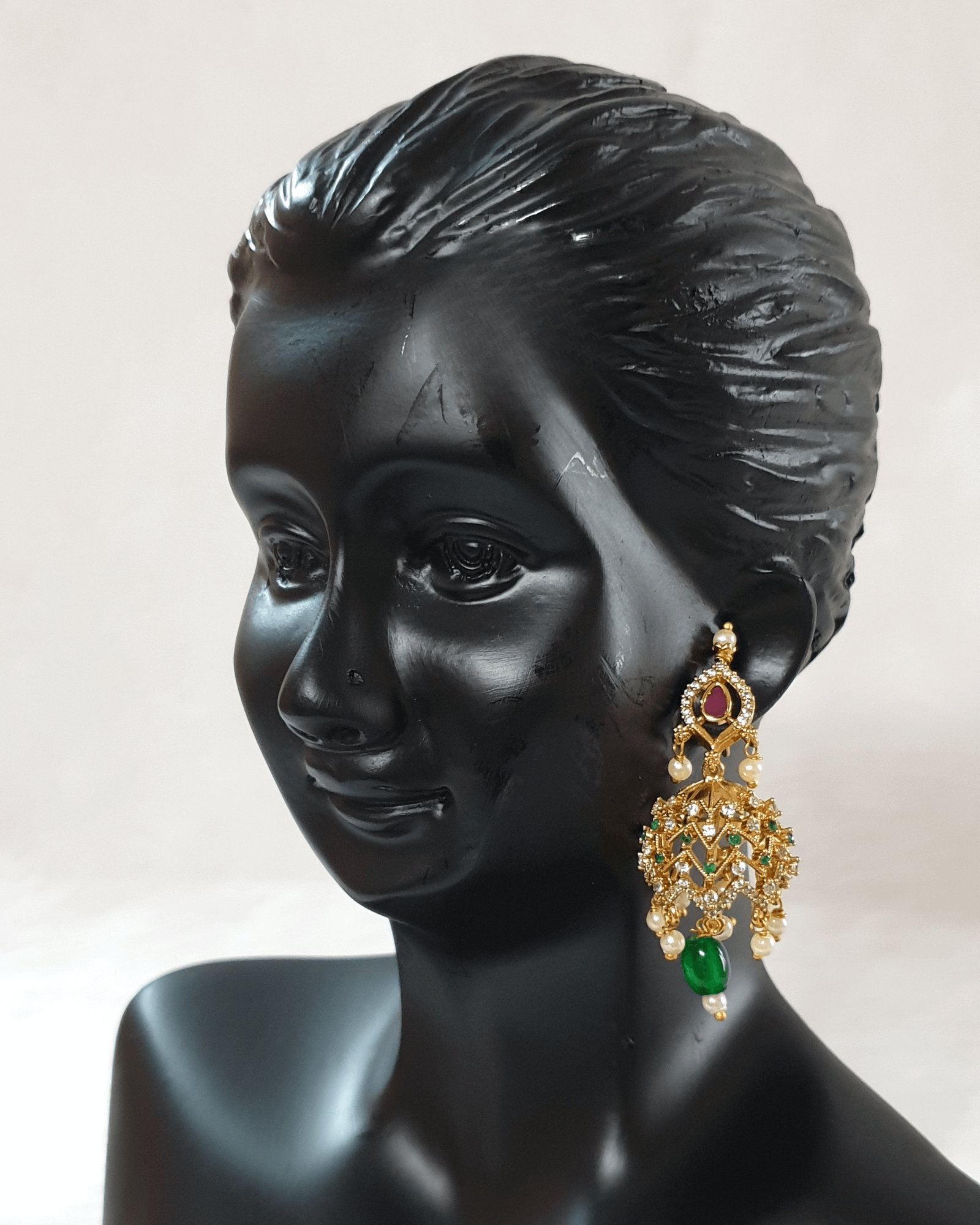 The graceful dome-shaped jumka is accentuated with hanging pearl or bead droplets, enhancing its traditional appeal. Perfect for weddings, festive occasions, or heritage celebrations, these earrings elevate every ethnic look with their refined artistry and cultural depth.